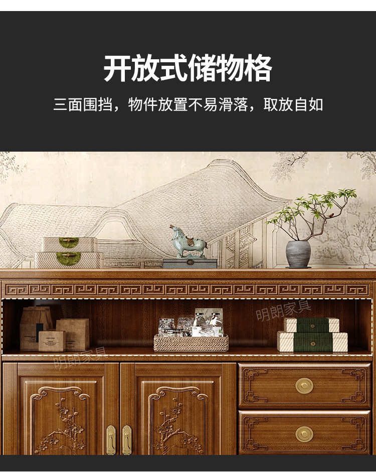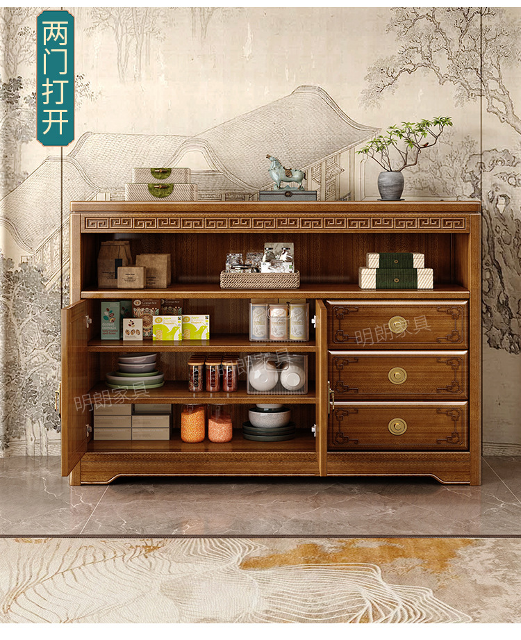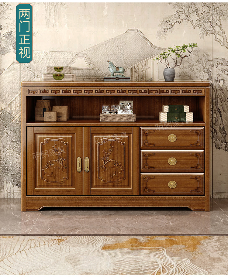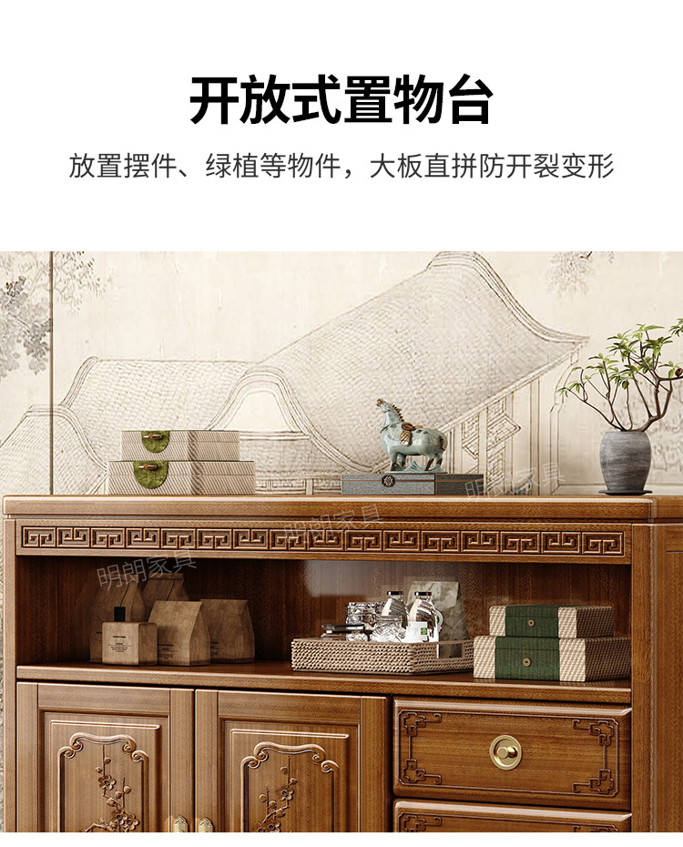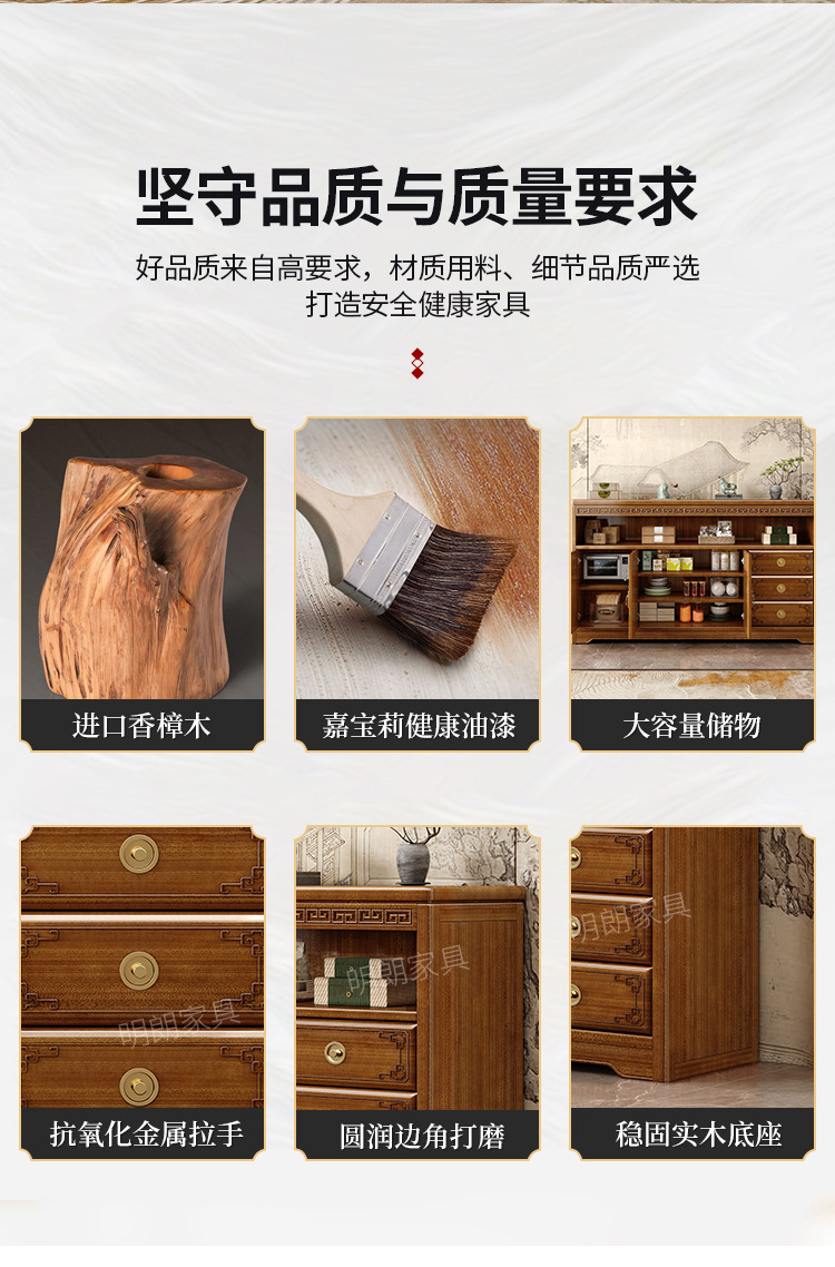 • 商品名称:新中式餐边柜香樟木玄关现代客厅实木装饰隔断靠墙碗柜储物家用