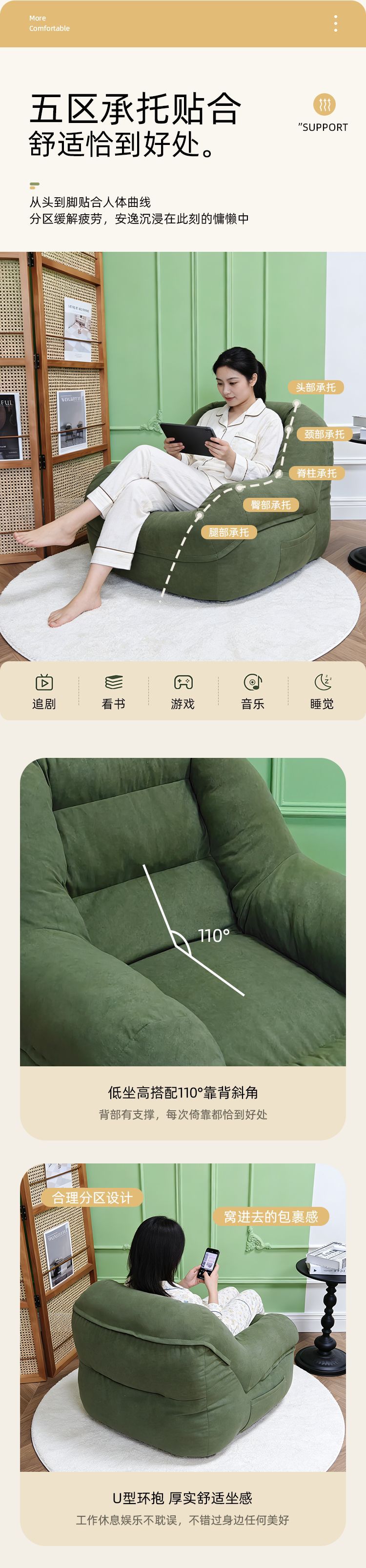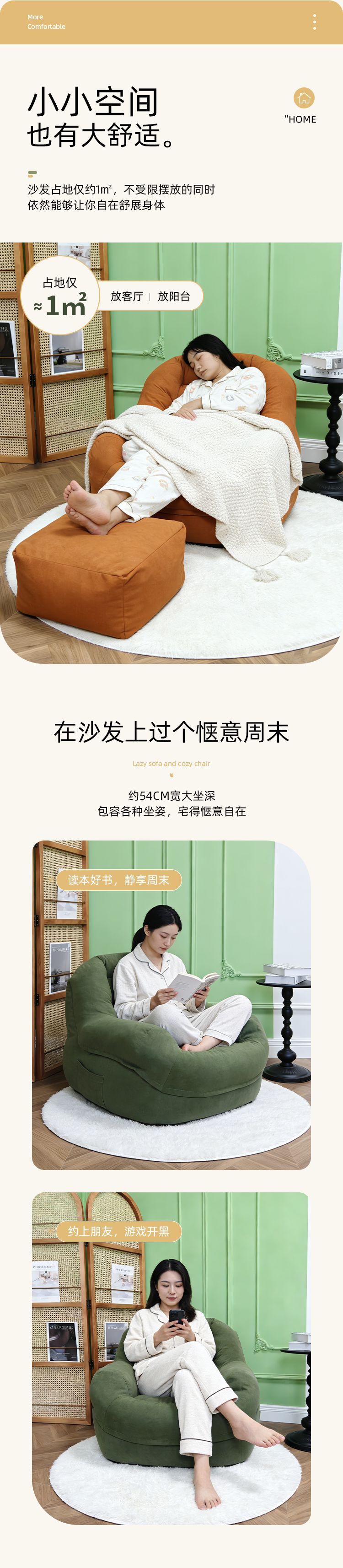• 商品名称:懒人沙发可躺可睡卧室阳台房间单人小沙发窝窝椅榻榻米靠背躺椅